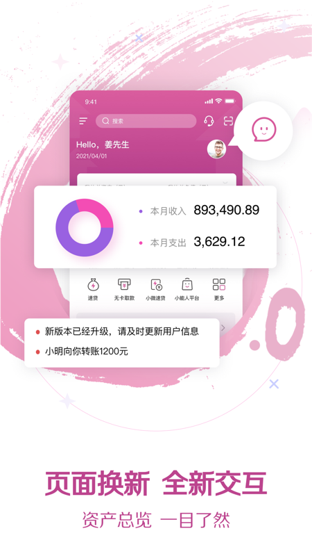 重塑五大板块,轻松交互,“我的首页”资产总览,一目了然;更有四季主题,感受春夏秋冬!