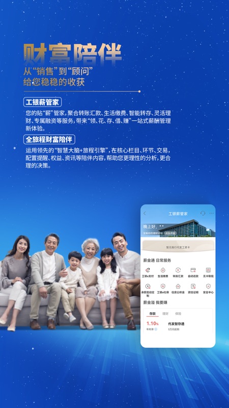 工银薪管家,您的贴“薪”管家。聚合“三专五薪”专属服务,带来“领、花、存、借、赚”一站式薪酬管理新体验。