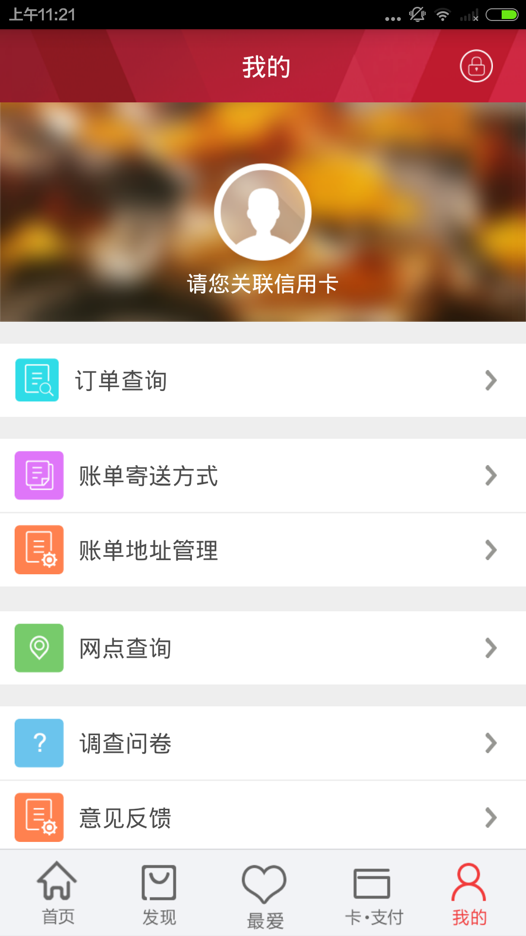 4.“我的”:订单查询,账单地址管理,分期管理,网点查询…方便您管理查询自己的服务信息。