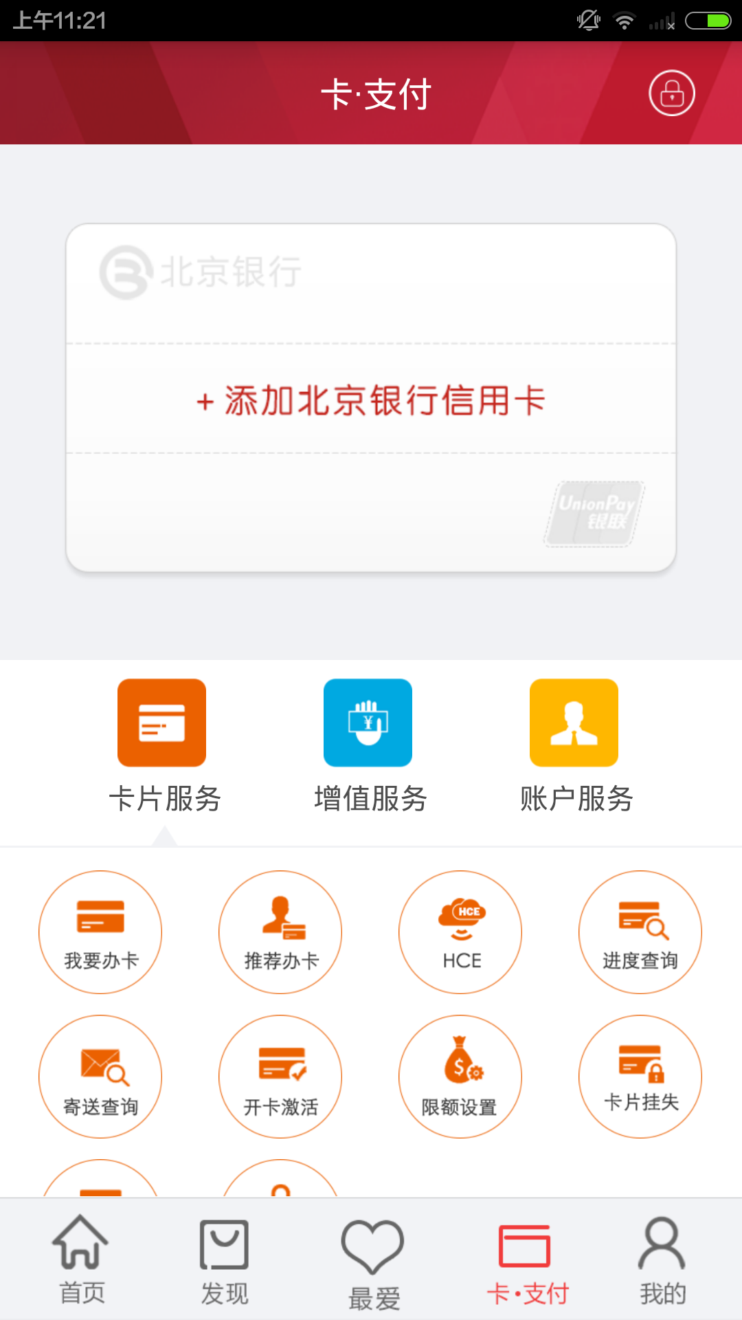 3.“卡支付”:我要办卡,进度查询,寄送查询,开卡激活,手机充值,机票预定,酒店预定,交通罚款,已出账单,未出账单,额度管理,积分查询…让您的获取金融类生活类服务变得更加简单便捷