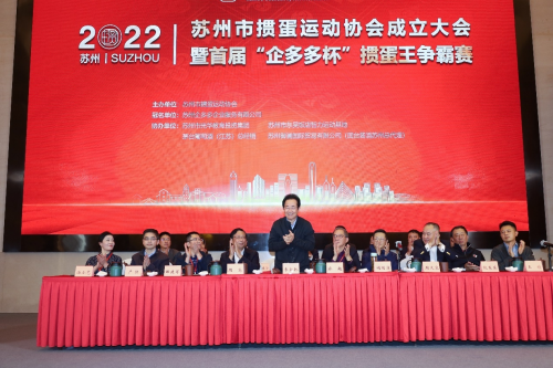 经苏州市掼蛋运动协会一届一次会员代表大会和一届一次理事会选举,产生了协会第 一届会长、执行会长、副会长、秘书长以及监事长等。协会首批会员共 330 人,设 6 大活动基地,江苏省原副省长李全林受聘为名誉会长、周天泉任苏州市掼蛋运动协会首届会长,东方融资网总裁胡玉建现场受聘为协会执行会长,企多多掼蛋俱乐部所在地—东方融资网旗下东家会馆受聘为活动基地。