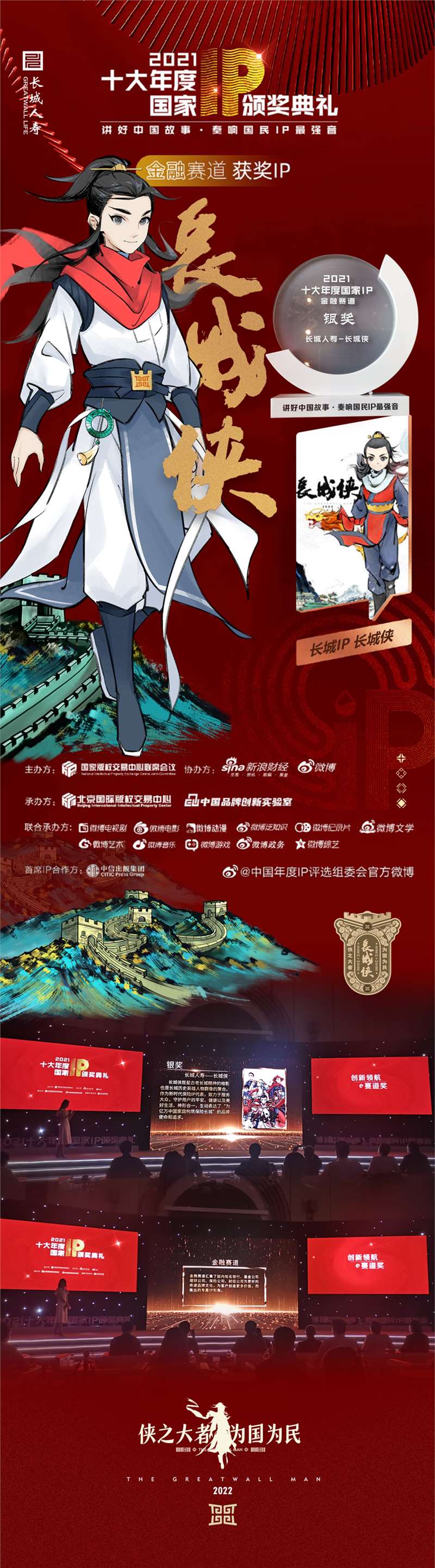 本次获得 2021 十大年度国家IP金融赛道银奖是市场与公众对长城侠的肯定。未来虽路漫漫其修远兮,长城侠将永葆那颗上下求索之心,坚持讲好长城故事,奏响国民IP比较 强音!